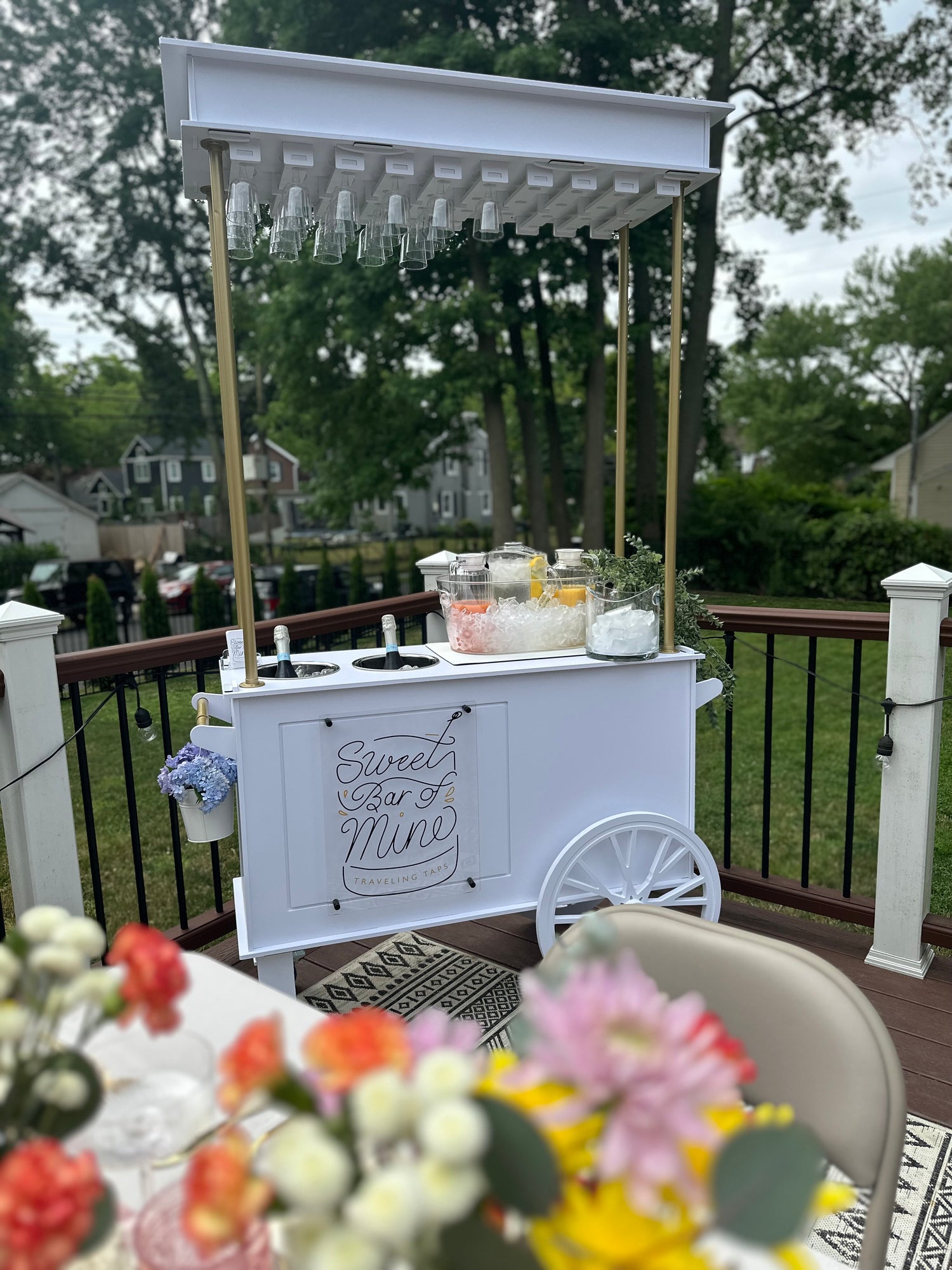 This delightful and lightweight cart is available for rent and is perfect for all occasions! Whether it's a bridal or baby shower, holiday party, graduation, birthday celebration, or any cocktail party, this charming addition elevates your event. Use it as a stylish bar setup or for serving beverages with flair. Let us bring elegance and functionality to your next celebration!